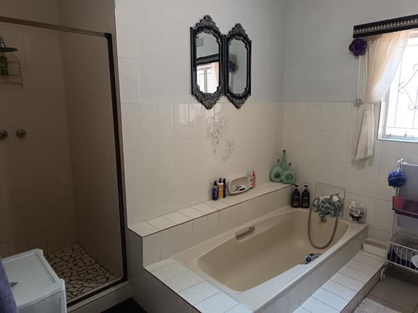 Four bedrooms (all with built-in cupboards), Three bathrooms (1 En-suite full, 1 full, and a guest toilet), an open plan Dining room, Lounge, TV room, Kitchen (Built-in cupboards, stove, and a scullery).