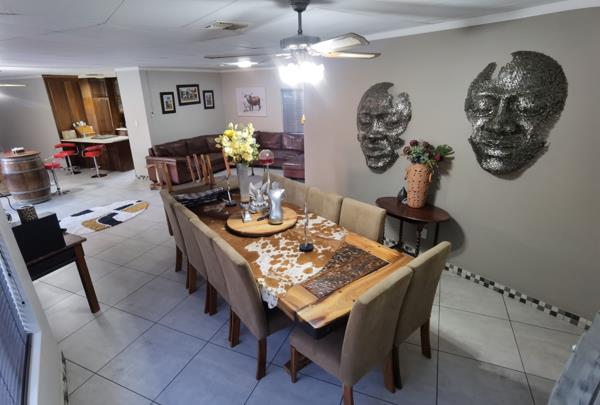 This exceptional family home sits on 1 360 m², offering a perfect blend of comfort, style, and entertainment. The main residence features four large bedrooms, three modern bathrooms, and open-plan living areas including a kitchen, dining room, lounge, TV room, and barideal for family living and hosting guests.