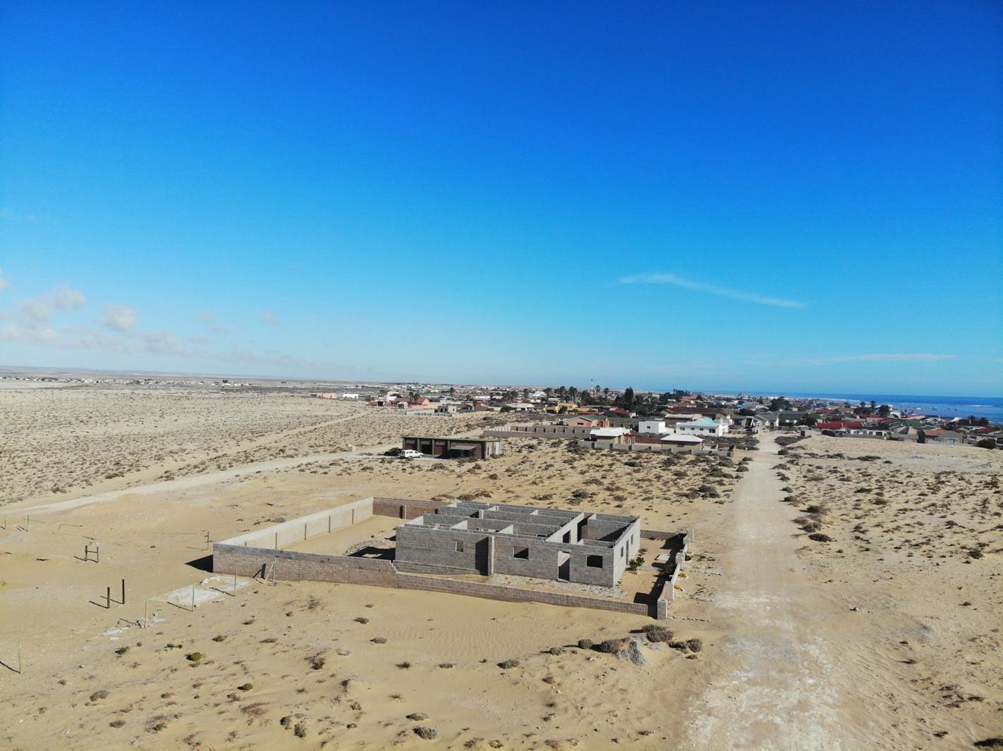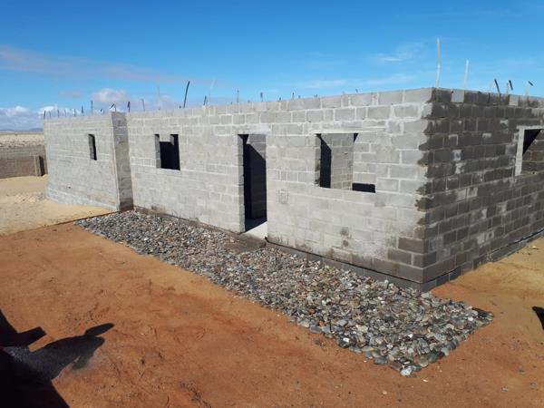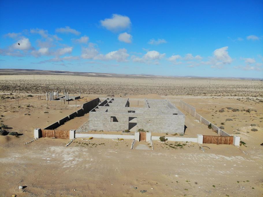 Building located in a new developmental area of Port Nolloth. This roof height, half built house consists of 6 bedrooms, 3 bathrooms, open plan loungedining roomkitchen. A large amount of building material is included in the purchase price. Front door, 7 Glass doors, 10 interior wooden doors, Aluminium windows, 1 bathtub with taps, 1 rectangular sink with taps, 1 round sink with taps, 3 x toilets and taps, 18 light switches, 18 wall plugs, all the lights for the house, power cable 20mmx 60 meters, 2 x electric wire, 6 PVC drain pipes, outside drain finished by kitchen building, 1 shower heads with taps extra 2 shower heads and an electric geyser, water pipe 20mm x 60 meters with taps , new pressure pump for water pressure and 2 x bathroom cabinets.