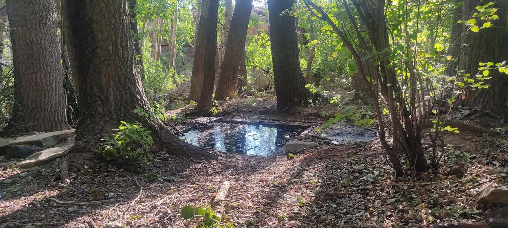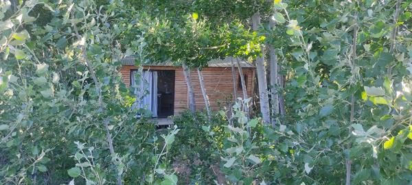 Wooden House A: Open-plan living/kitchen/bedroom/bathroom, indoor braai and Jacuzzi. Currently operating as a certified food-processing businessideal for biltong, meat products, or a restaurant nestled between the trees and fountain.