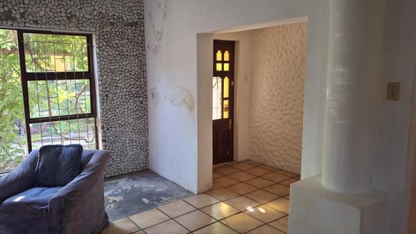 The smaller house is used as a art studio at the moment and can also be used as extra house or coffee shop or restaurant. The house has two large rooms and a smaller room with a en-suite bathroom. The kitchen is open plan and can extend into the long passage. A few storerooms is handy for all you re extras. The house also has three fase electricity
