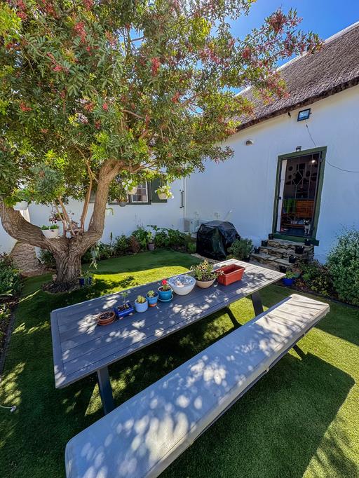 Stable doors lead from the kitchen into a private, enclosed back garden, offering an ideal space for outdoor entertaining. The garden comfortably accommodates a braai area, picnic seating, children, and pets, creating a secure and tranquil outdoor environment.