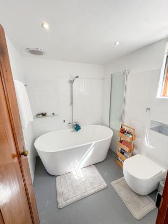 Second Bedroom: Generously sized with its own en-suite bathroom featuring a shower, basin, and toilet.