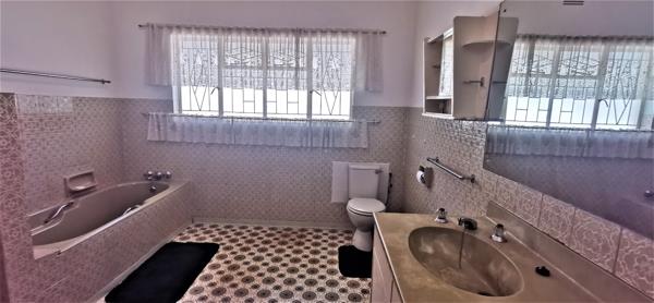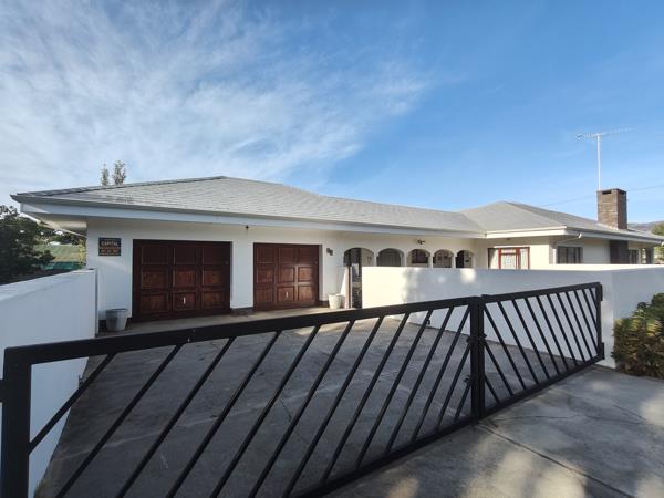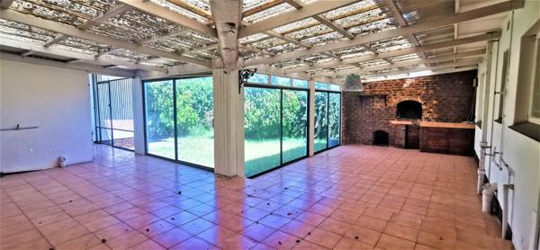 Inside, the spacious lounge and dining room provide inviting spaces for relaxation and entertaining, while the well-equipped kitchen offers abundant storage and space for an electric stove and oven. Outdoors, the undercover braai area adds to the appeal for social gatherings, and there is a separate laundry room, an additional room that could function as an office or storage space, an outside toilet, and staff quarters, all of which add to the homes practicality.
