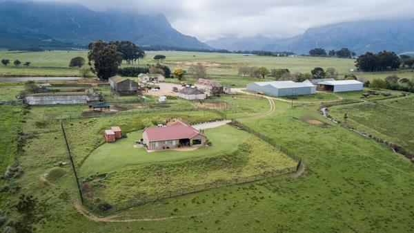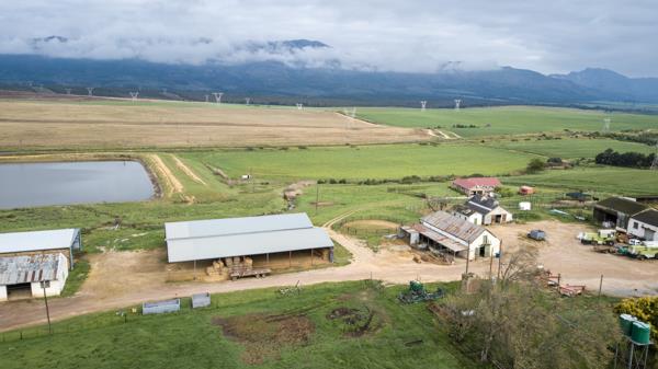 The farm is supported by substantial infrastructure. There is a three-bedroom main residence as well as a separate three-bedroom managers house. Farm operations are well accommodated with three large feed storage sheds covering 1,550 square metres, 700-square-metre implement sheds, workshops, stables, and six staff houses. Power is supplied by two Eskom connections of 100 KVA and 25 KVA respectively.