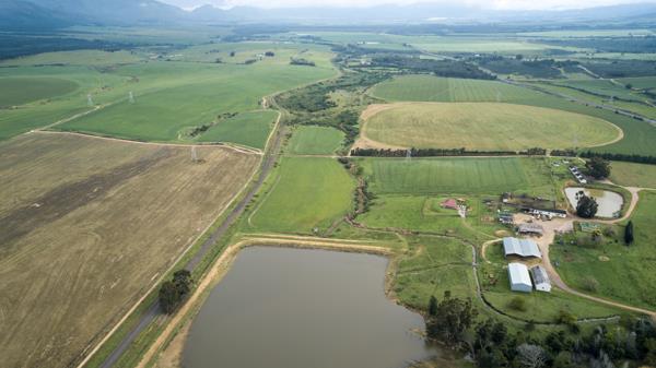 Of the total landholding, 485 hectares are arable and under active cultivation, with 70 hectares irrigated by centre pivots. Water security is excellent, with four boreholes, two storage dams, and registered scheme water rights amounting to 321,000 cubic metres. Current crops include lucerne, teff, oats, wheat, and canola, providing reliable income streams.