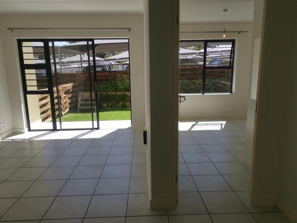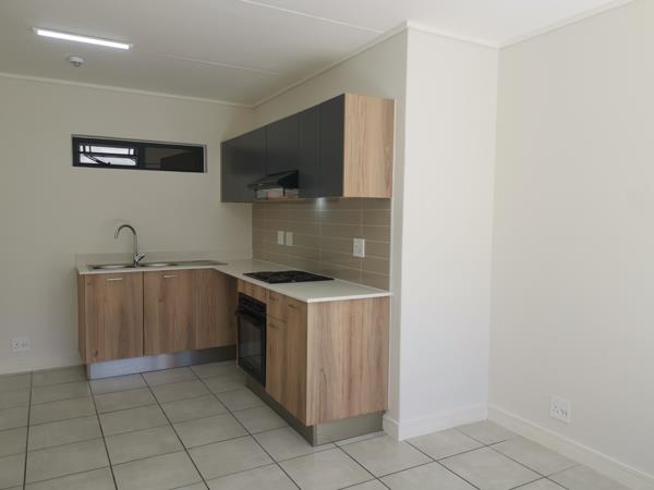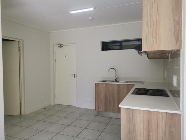 Establish your independence in this one bedroom Apartment! This modern apartment is designed to ensure maximum optimized space and the large aluminum windows, as well as the open plan Kitchen and Lounge allows natural sunlight into the premises. It is situated on the ground floor, with the patio and garden facing North, allowing direct sunlight to enter the premises from late morning to noon. a Garden gate gives you quick access to the covered parking allotted to the unit. The unit is tiled throughout and the finishes are ultra-modern. There is more than ample built-in cupboard space in the kitchen and the spacious bedroom. The kitchen is fitted with a Defy electric Oven, Hob and Cooker Hood, and there is under cupboard space with an outlet for a washing machine as well as a tumble dryer. The water and electricity are prepaid. The apartment is fitted with fibre and is DSTV ready. Greenbay Estate is conveniently situated in close proximity to superb shopping centres, schools and medical facilities, and have easy access to the N2 and the R44.