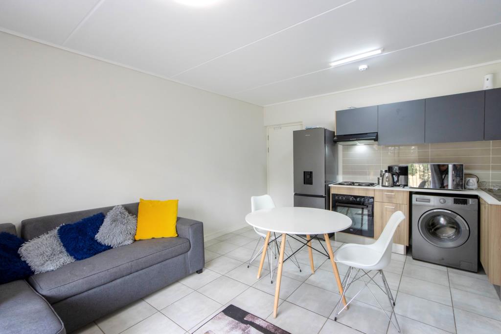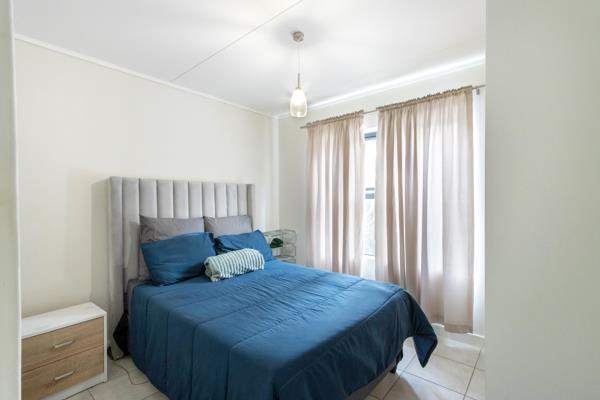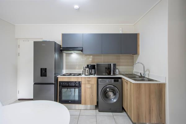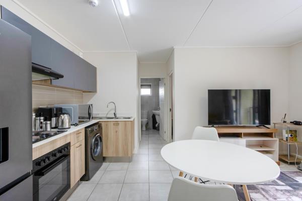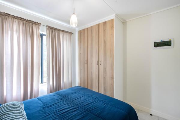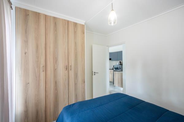 The well-sized bedroom includes built-in cupboards and is complemented by a sleek, modern bathroom with quality finishes throughout. Large windows allow for plenty of natural light, creating a bright and welcoming atmosphere.