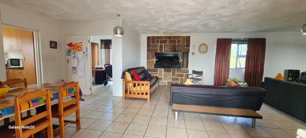 The lower level features a spacious open plan lounge area with a built-in braai, a kitchenette, one spacious bedroom, a bathroom with shower, toilet, basin.