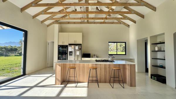 Escape to a world where luxury, nature, and freedom meet. This newly built 3-bedroom, 2-bathroom residence is set on an expansive smallholding in the heart of the Cape Winelands region, perfectly positioned to enjoy panoramic views of the Hottentots Holland Mountains, glistening ocean, and rolling vineyards.