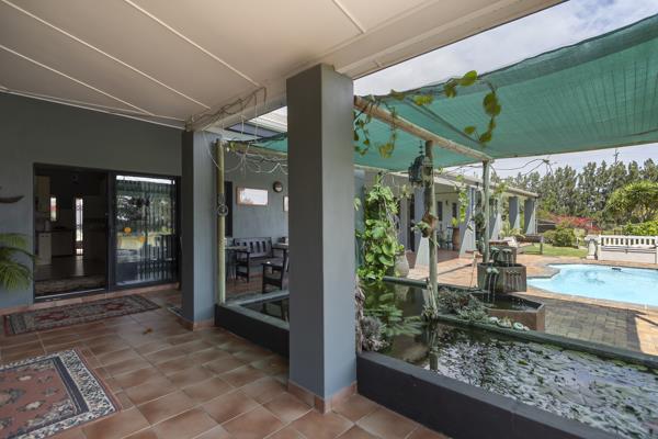 Discover this exceptional smallholding that perfectly combines space, tranquillity, and comfort truly a property that feels like everyones dream home. Enjoy the outdoors with a large dam stocked with fish, fish pond, and sparkling swimming pool, all set within a beautifully manicured garden. The covered L-shaped patio overlooks the dam and provides the ideal setting for relaxing or entertaining. The home features 4 bedrooms and 3 bathrooms, with an open-plan lounge, dining area, and kitchen, plus a separate scullery/laundry room. The braai and entertainment room includes an opening for a built-in braai, perfect for year-round gatherings. Two bedrooms and the living areas open directly onto the patio, creating a seamless indoor-outdoor flow. Additional features include a double garage, double carport, and ample open parking.