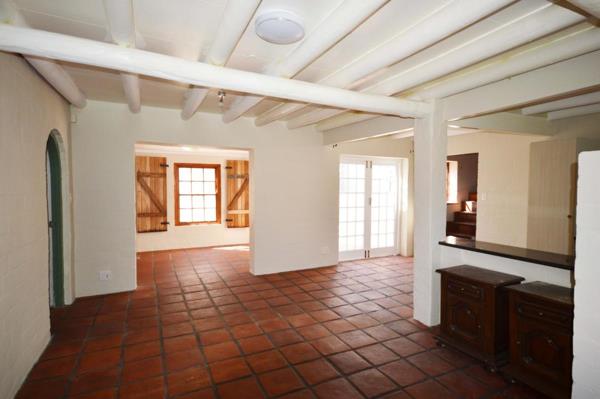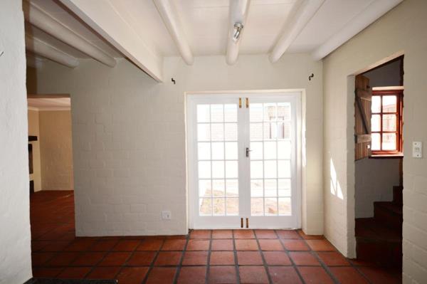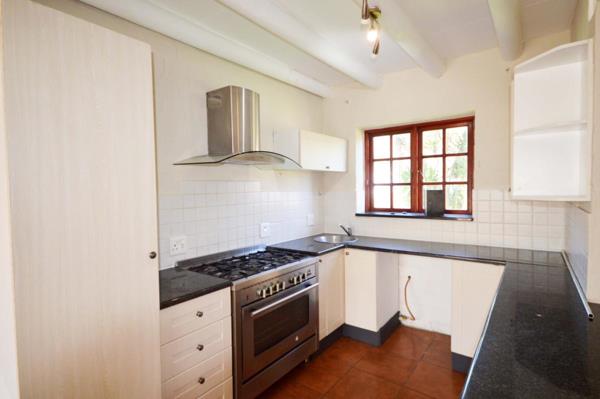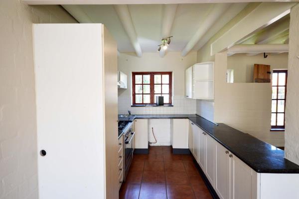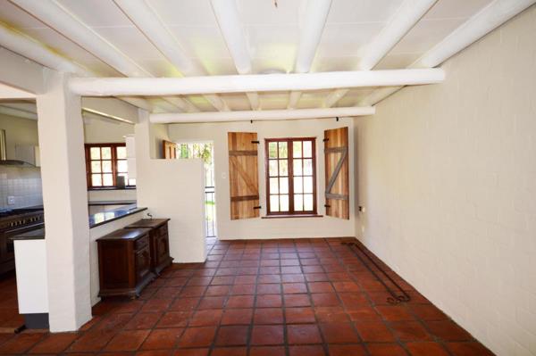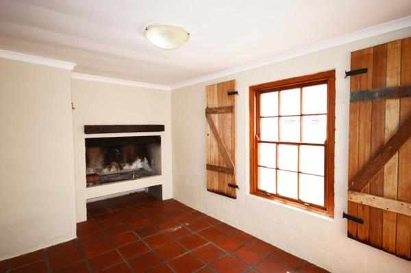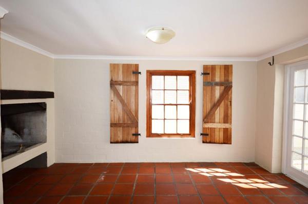 On the ground floor, a modern open plan kitchen, lounge and inviting entertainment room with huge fireplace for braai and comfort in Winter. Access to the garage. The terracotta flooring, white walls and wooden shutters create a classic rustic homely holiday feeling.