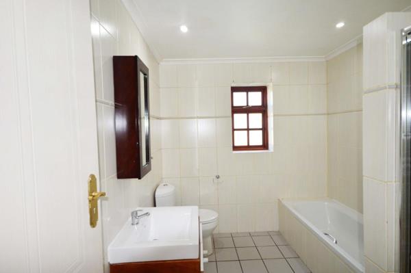 Two bedrooms with built in cupboards. Wrought iron curtain railings. Full bathroom with bath and shower. Separate washing room leads from the bathroom.