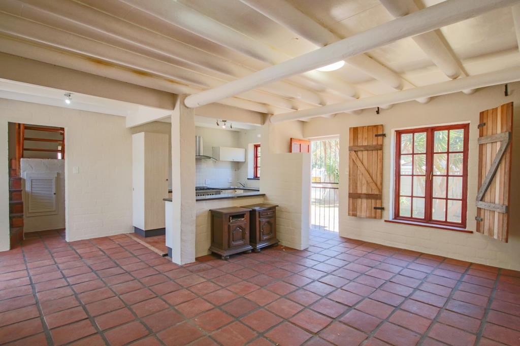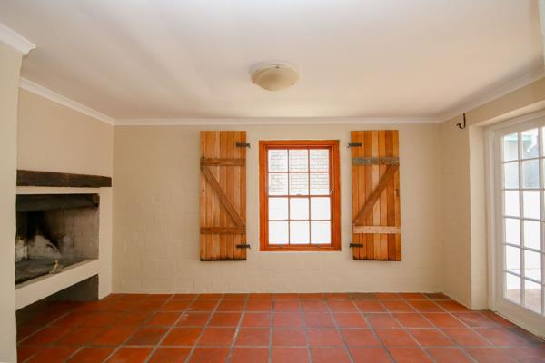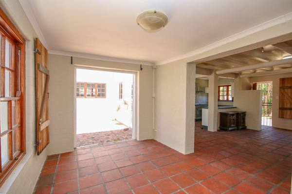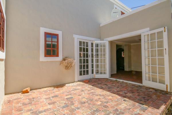 The main floor features open-plan living areas, a cozy indoor braai with French doors opening onto a sunny courtyard, two bedrooms, a full family bathroom, and a convenient laundry room.