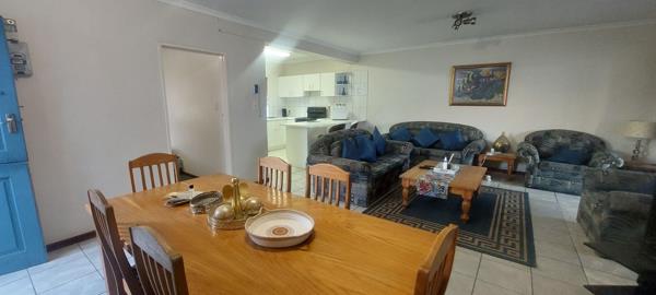 Located just a short stroll from the main beach. Situated on the first floor. This home features a spacious living area that opens through onto a large undercover balcony with a built-in braai & stacking doors. It offers three generous bedrooms with built-in cupboards and two bathrooms main en-suite. For your convenience, the unit includes a dedicated storage room and secure undercover parking behind gated entry with electric fencing. Extra guest parking outside the complex, a large communal swimming pool, and beautifully maintained gardens.