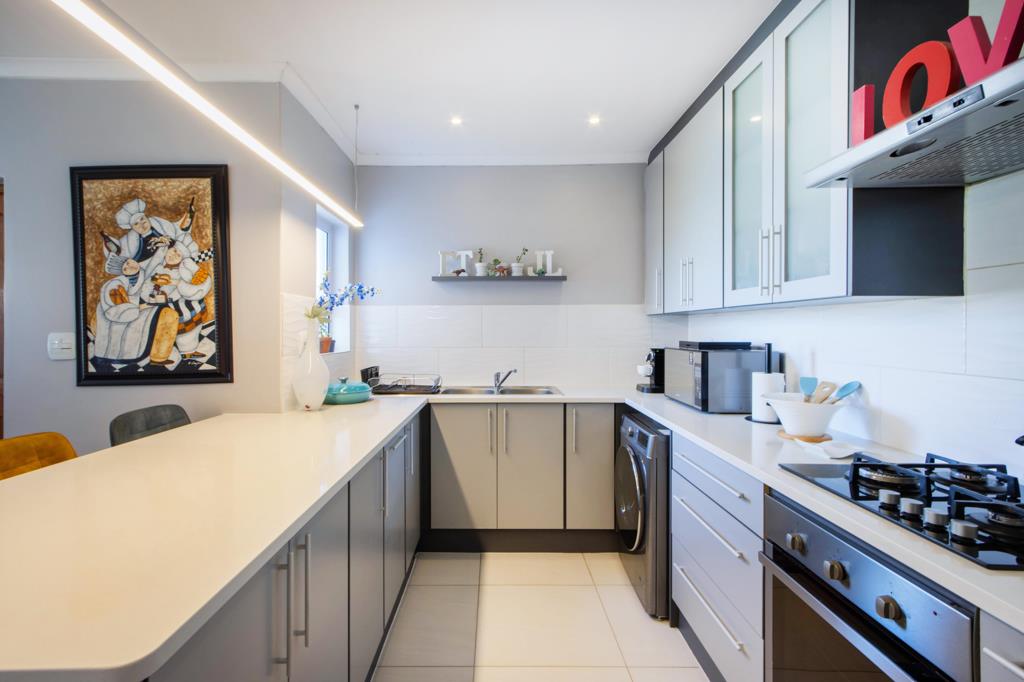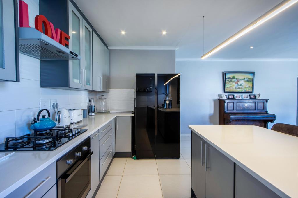 The main bedroom is a sanctuary of tranquillity, offering breathtaking views of the golf course and the majestic Helderberg Mountains. It features an en-suite bathroom, providing the perfect private retreat. The other two bedrooms are equally spacious and well-appointed, ensuring comfort for family and guests alike.