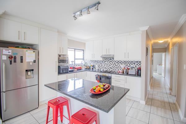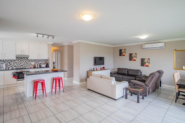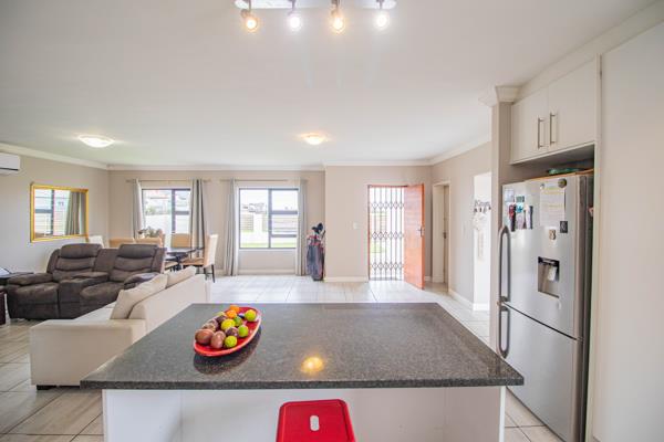 This freehold 3-bedroom all fitted with aircons, 2-bathroom home offers the perfect blend of comfort, style, and security. As you enter through the front door, you are greeted with a fabulous open plan kitchen and a center island with an abundance of cupboard space. Direct access from the kitchen leads to an undercover interior braai and bar area. The aluminium stacked doors opens to a sparkling swimming pool, with enough land for your pets. Its designed for year-round enjoyment. The property features double garages, secure parking, fibre internet, and a fully walled perimeter with infrared cameras for peace of mind.