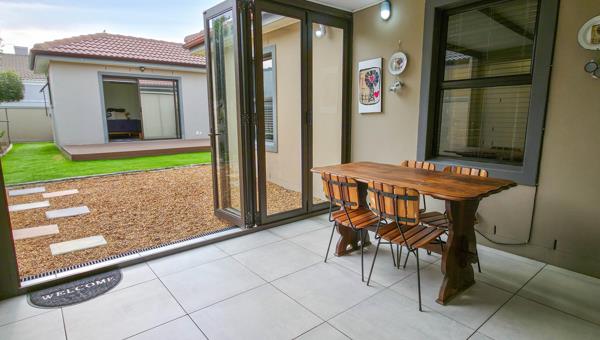 Enjoy seamless indoor-outdoor flow with an expansive entertainment area featuring stacker doors and a built-in braai perfect for hosting in any season.
