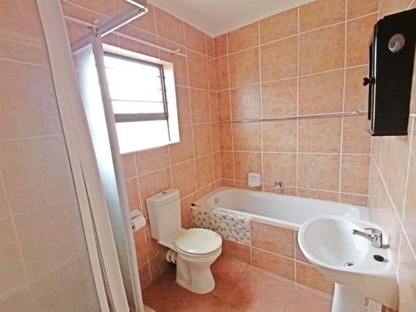 The bathroom is designed for everyday convenience, boasting a full suite complete with a shower, tub, toilet, and basin.