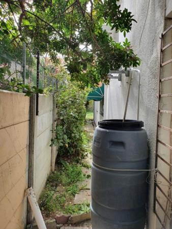 There is a double garage with an automated flip-up door. You have a mature garden with trees, lawn and plants. The property is completely walled in with an electric main steel gate..