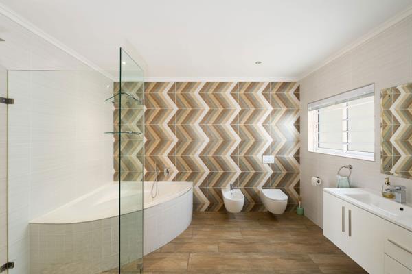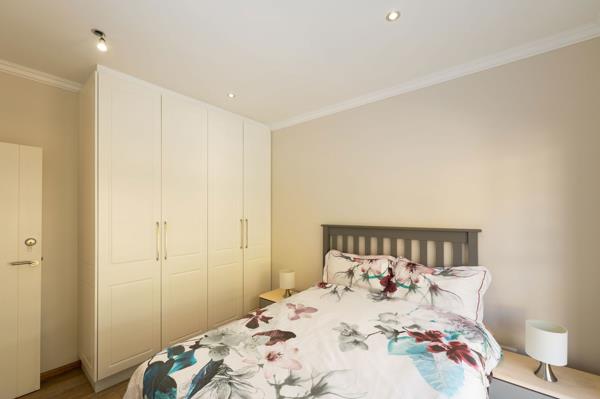 The home offers four bedrooms. The stylish main bedroom with a spacious en-suite, has ample cupboards and is situated on the lower level, with the other three bedrooms on the upper level.