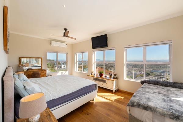 Mountainside Splendour with Panoramic views. This beautiful north facing stylish home has been well designed to maximise the beautiful views across False Bay and the Hottentot Holland Mountains.