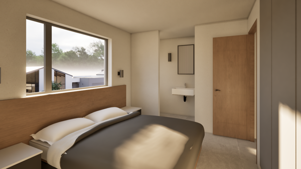 The main bedroom is a private retreat, complete with a luxurious en-suite bathroom and built-in wardrobes.