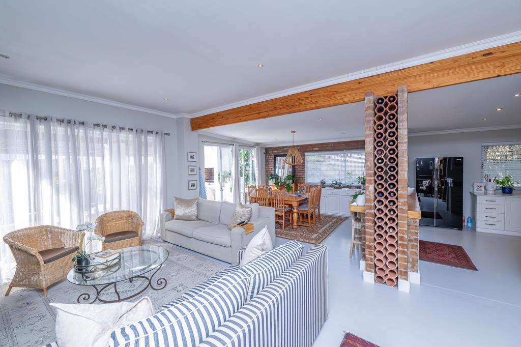 The home features three spacious bedrooms, each with its own en-suite bathroom, with air conditioning in select rooms for year-round comfort. The main living areas open onto a chic outdoor entertainment space complete with a built-in braai, perfectly suited for gatherings with family and friends.