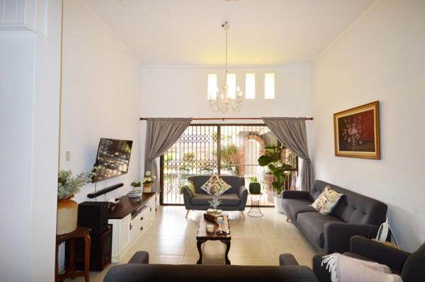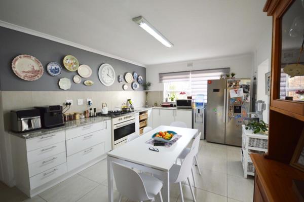 You can enjoy entertaining on the protected patio or host a dinner party in the grandeur of the open plan dining room which extends to the lounge and patio. The well-appointed kitchen is fitted with more than adequate built-in cupboards, a five-burner gas hob and an undercounter oven with a separate scullery and laundry. Also, conveniently adjacent to the braai room. Enjoy the tranquillity of the main bedroom with an en-suite bathroom and sliding doors that open onto the patio. The second bedroom also opens with sliding doors and overlooks the charming garden. The third and fourth bedrooms share a beautiful bathroom, and guests have the use of the guest toilet with a hand basin. The separate, spacious flat consists of 1 bedroom, bathroom, kitchen and lounge with a tv point. Two garages, storage and parking for 6 extra vehicles completes this totally fenced property.