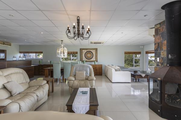 The vast lounge - dining area offers uninterrupted views of False Bay with ample seating arrangements. Any social occasion dream.