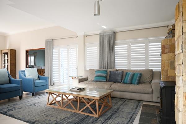 On the third floor you are invited into a huge open plan lounge area where the stainless-steel staircase is a center peace of your interior. The very spacious lounge area comforts you with a fireplace and stone facade and walks out onto a covered patio/ braai area with an endless view of the Vals Bay. The dining room is stylish formal, and you fall in love with the brand-new kitchen and scullery that overlooks the Heldeberg Mountains.