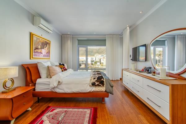 Upstairs, the main bedroom is a sanctuary of luxury, featuring an en-suite bathroom with a double shower, double vanity, bath and separate toilet. This retreat opens onto a balcony, offering sweeping views of the marina and majestic mountainsa perfect spot for morning coffee or evening relaxation. Every bedroom on this level opens onto a balcony.