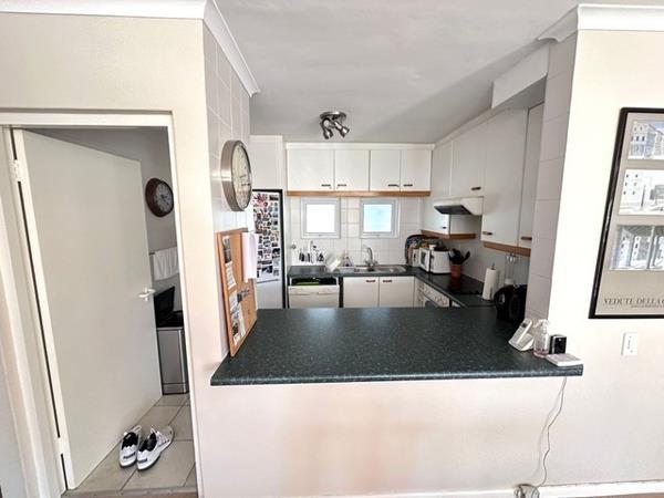 Fully fitted kitchen , open plan lounge and dinning room that leads out on to the balcony for those sundowners and views of the harbour and mountains .