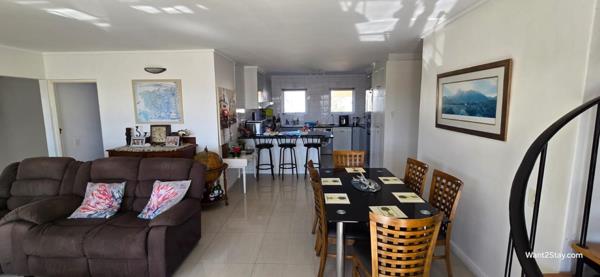 Upstairs, the expansive third bedroom suite opens onto two private terraces one enclosed for quiet reading or creative work, the other an impressive entertainment deck with a built-in braai and sweeping ocean panoramas.