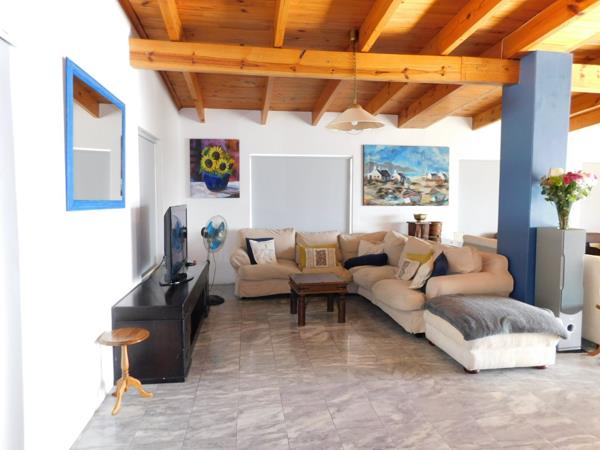 Enter this home into an enclosed entrance and a water feature into an open plan lounge which opens onto a wooden deck with breathtaking views of Gordons Bay Beach. From the lounge there are 2 interlinking bedrooms, each with their own bathroom. The floors are laminated wooden floors. From the entrance there is also a laundry room with ample cupboards space and a basin. From the laundry there is a staircase leading to the top floor which only has the main bedroom and small study or additional bedroom. The spacious main bedroom boasts with a walk-in closet and full en-suite bathroom. The main bedroom also offers a wooden deck to enjoy sunrises and sunsets over Gordons Bay. Walk in closet offers access to the garages for safe access to property.