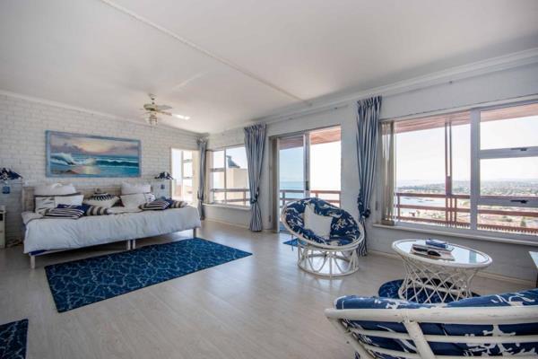 The main bedroom is situated on the top floor and offers a full en-suite bathroom with a walk-in dressing room, which opens onto a wooden deck overlooking the stunning False Bay.