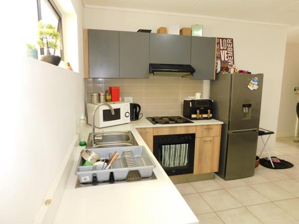The apartment offers 2 spacious bedrooms both with modern built-in cupboards. 2 sleek bathrooms with modern finishes and fixtures of which one is an en-suite to the main bedroom. Open plan light filled lounge and kitchen flowing onto a private balcony to enjoy evening drinks or your morning coffee. Modern kitchen featuring granite countertops, built in electric oven and stove and ample cupboard space.