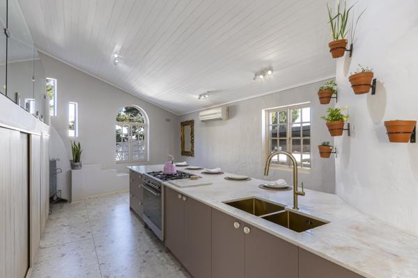 Located in the sought after Mountainside in Gordons Bay this beautiful home offers bright and airy open-concept living spaces with arched doorways and Spanish inspired tiles and design.