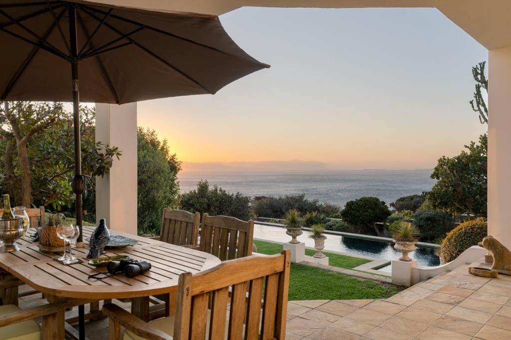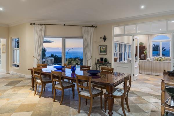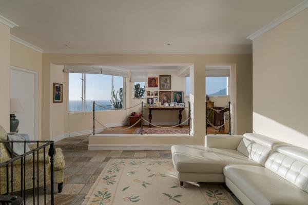 This truly remarkable home is nestled in a spectacular setting, offering panoramic views of both the sea and the mountains. At street level, you''ll find ample space ideal for an office, studio, or workshop. Just a few steps up lead into the main living area, where an open and light-filled layout seamlessly blends the lounge, dining space, and kitchen. The lounge is flooded with natural light and features a central fireplace, creating a warm and inviting atmosphereperfect for cozy evenings with family or friends. From here, you can step directly out to the pool, where breathtaking vistas of Table Mountain and False Bay provide the ultimate backdrop for relaxation.