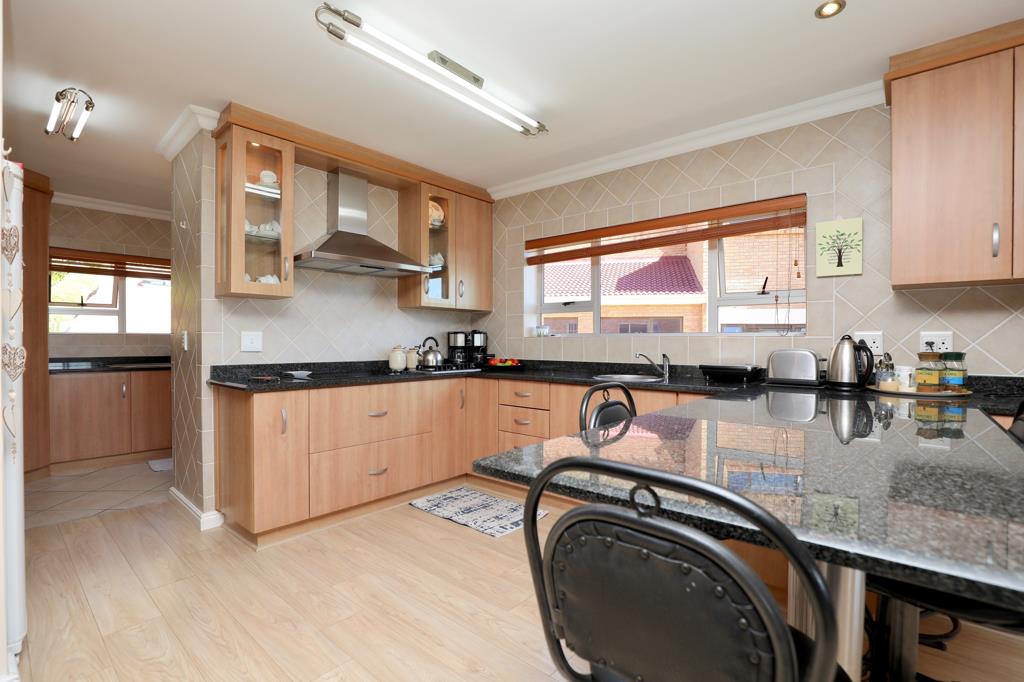On the first floor you will find a spacious open plan kitchen, dining room, lounge with built- inbraai, offering functionality and easy flow. The large study providesthe perfect space to work from home. Two bedrooms with en-suite bathrooms. The main bedroom is a spacious private sanctuary, complete with an en-suitebathroom. Ample cupboard space is available. Direct access to the balcony that offers spectacular views.