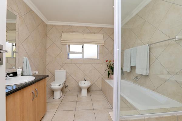 The ground floor features a charming and private flatlet. Perfect for dual living, guests or for Airbnbincome-generating potential. Three spacious bedrooms, each with an en-suite bathroom. Open plankitchen and living area overlooking a private garden and outdoor space.
