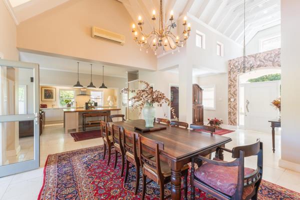 The kitchen is well-appointed with a built-in oven and hob two gas and two electric plates, a dedicated coffee station, and a large scullery that leads directly to the double garage with additional storage space. From the scullery, a door opens to a clothes drying yard for added convenience.