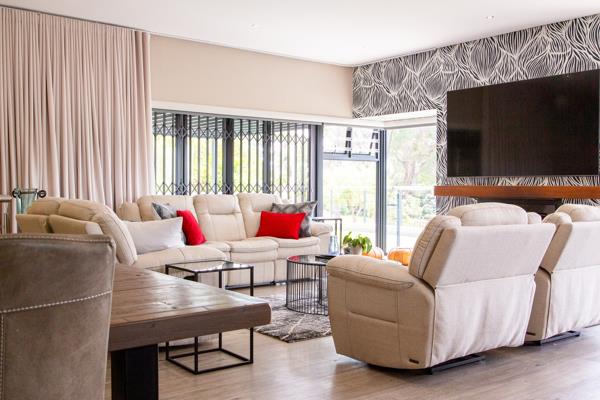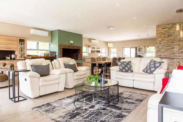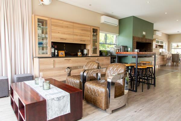 A State-of-the-art inside entertainment space, perfect for hosting family and friends with seamless indoor-outdoor flow. A wood combustion fireplace and an inside braai entertainment area overlook the breathtaking views. The outdoor area of this home is an entertainer''s dream, featuring a beautifully designed space that combines functionality and charm. A built-in pizza oven takes centre stage, perfect for hosting memorable gatherings and enjoying homemade wood-fired creations. A Spacious patio area allows for seamless outdoor dining and entertaining surrounded by natural beauty. This space invites relaxation and socializing, making it the perfect extension of the home''s luxurious living areas, a sparkling pool overlooking the picturesque landscape, ideal for relaxing and enjoying sunny days.
