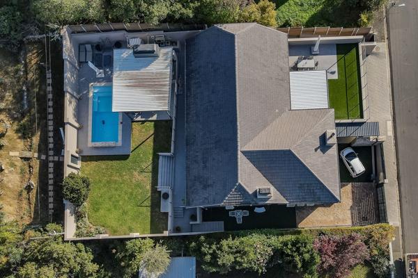 The outside entertainment area leads out from the upstairs kitchen. This entertainment area features a sparkling pool, which is fitted with a heat pump. It also features a covered seating area with a braai and pizza oven, perfect for hosting gatherings with loved ones.