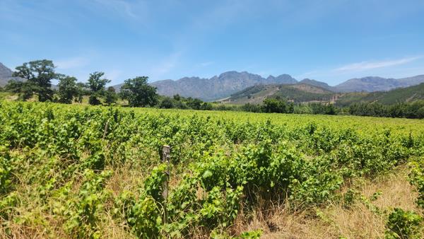 Goederust - On offer is this expansive old wine and fruit farm of approximately 120ha in extent, situated in a prime location with beautiful mountain and valley views. This property is just off the R45 in very close proximity to the world-renowned village of Franschhoek. With well-known wine estates as neighbors, the property offers exceptional opportunities for the development of a wine, equestrian or agritourism estate, or combinations thereof.