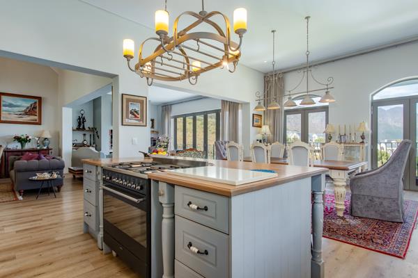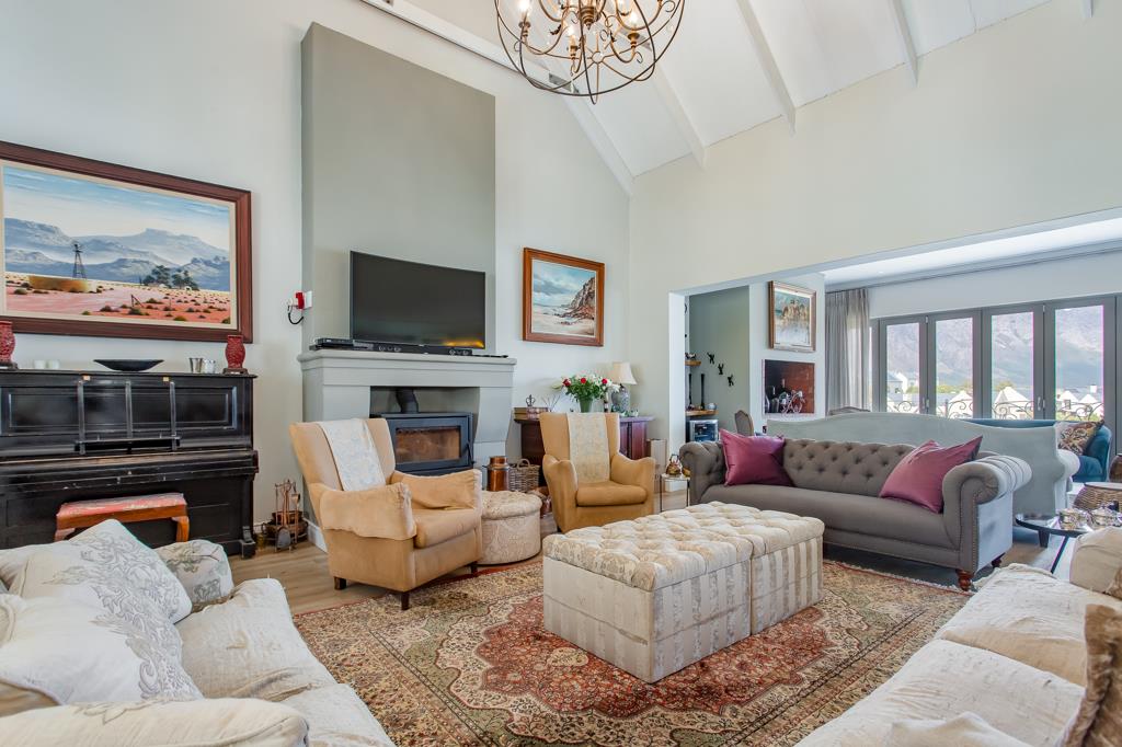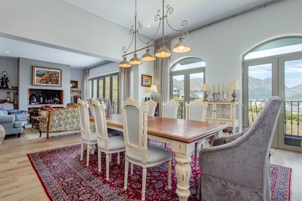 DUAL MANDATE - This exquisite family home, nestled within the prestigious Fransche Hoek Estate, offers breathtaking views and exceptional elegance. Designed with meticulous attention to detail, this residence effortlessly blends sophistication with comfort, creating an inviting and luxurious home. The main reception area features a formal lounge with soaring ceilings and a cozy fireplace, leading into a more relaxed and informal living space with an additional BBQ fireplace, expansive dining room, and a remarkable entertainer''s kitchen. The kitchen is complemented by a separate bakers kitchen and scullery, which conveniently connects to the double garage. Every aspect of the home has been thoughtfully designed, resulting in a seamless flow throughout the home. Large stacking doors throughout the living areas open onto a balcony, enhancing the panoramic views. A covered patio at the front of the house offers a serene oasis, overlooking the beautifully landscaped garden and awe-inspiring mountain vistas.