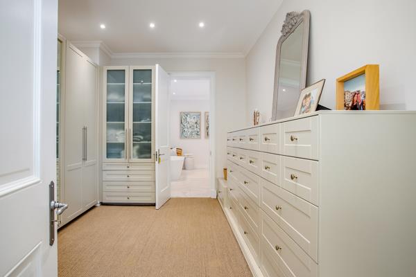 Emphasizing sustainability, the home is equipped with its own backup power system, making it an eco-friendly choice. The kitchen is complemented by a separate scullery and the home showcases a variety of elegant marble surfaces and tiles throughout. One standout feature is the bespoke wine cellar.