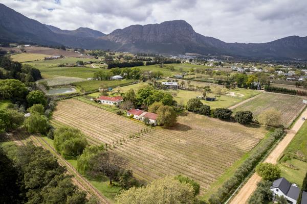 Discover a rare opportunity to own a historic smallholding with panoramic mountain views just minutes from Franschhoek village.