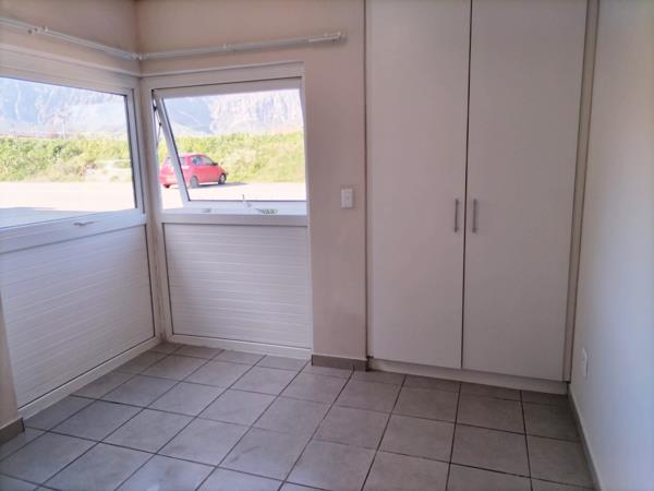 Discover contemporary living at its finest with this charming two-bedroom ground-floor unit, build in cupboards, ideally located within the secure Bergendal Estate. Step into a thoughtfully designed open-plan kitchen and lounge area, creating a spacious and inviting atmosphere perfect for modern life. The kitchen is well-equipped with an electric stove, oven, and extractor fan, catering to all your culinary needs.