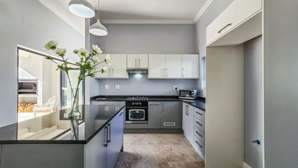 Perfect for entertaining, the large outdoor patio boasts stunning views and a built-in braai, making it an ideal space for gatherings. Additional storage has been cleverly incorporated into the larger-than-average double garagea rare and valuable feature.